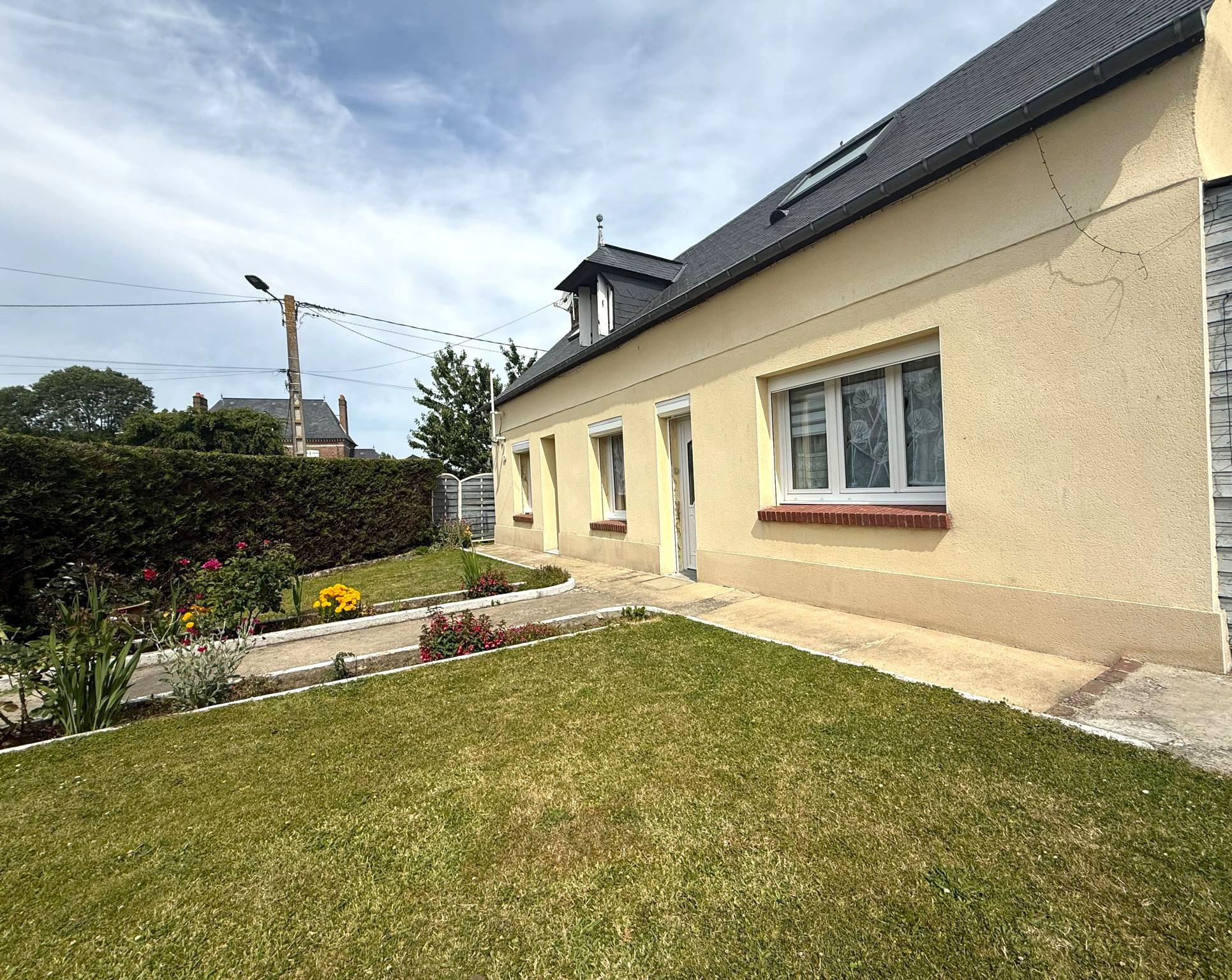 A proximité de Doudeville et de ses commodités venez découvrir cette jolie maison individuelle, vous offrant au rez-de-chaussée : une entrée, une cuisine ouverte sur un lumineux séjour / salon, une salle de bain, un WC indépendant et une pièce annexe menant à l étage pouvant faire office de bureau. A l’étage, vous trouverez trois chambres. Chauffage par pompe à chaleur et insert à bois et tout à l égout. Le tout édifié sur 320m2 de terrain avec un espace parking et plusieurs bâtiments. Classe énergétique : E -- 324 kWh/m2 /an GES : B -- 10 kg CO2 /m2 /an Prix 164 400€ FAI Réf 1625 A visiter rapidement ! Plus d informations au 02 78 94 73 00 !