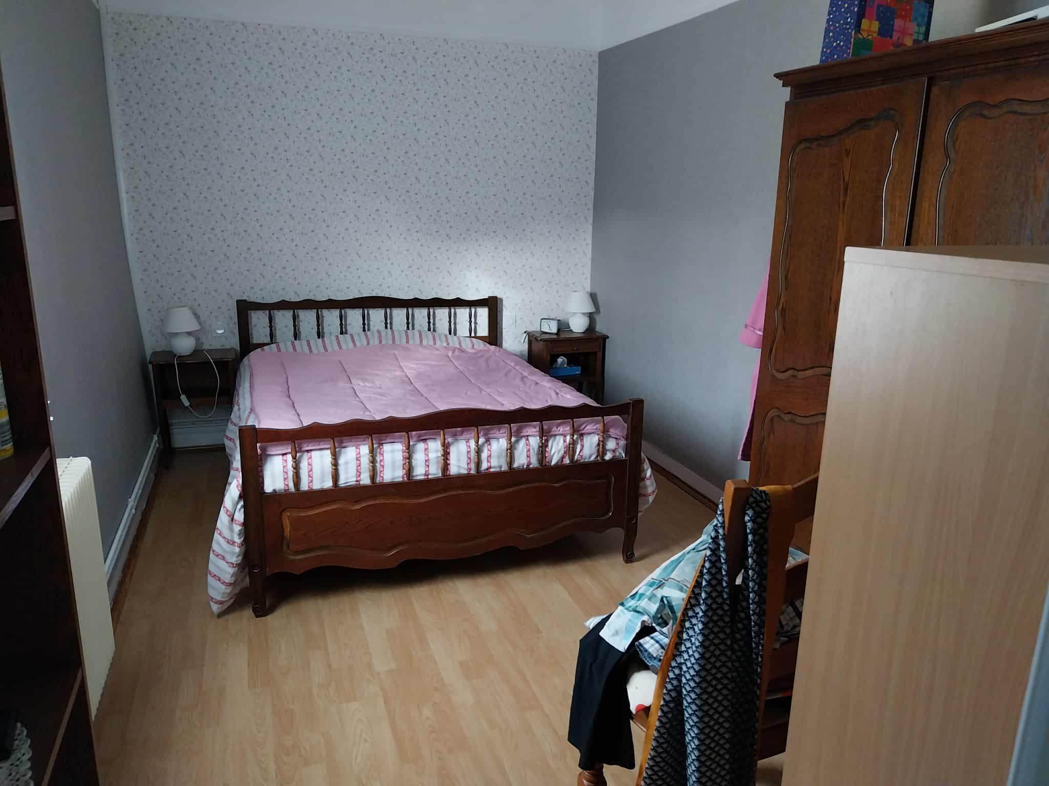 Proche centre ville: Longère de plain pied de type F3 avec chaufferie, buanderie et garage. CC gaz de ville récent.