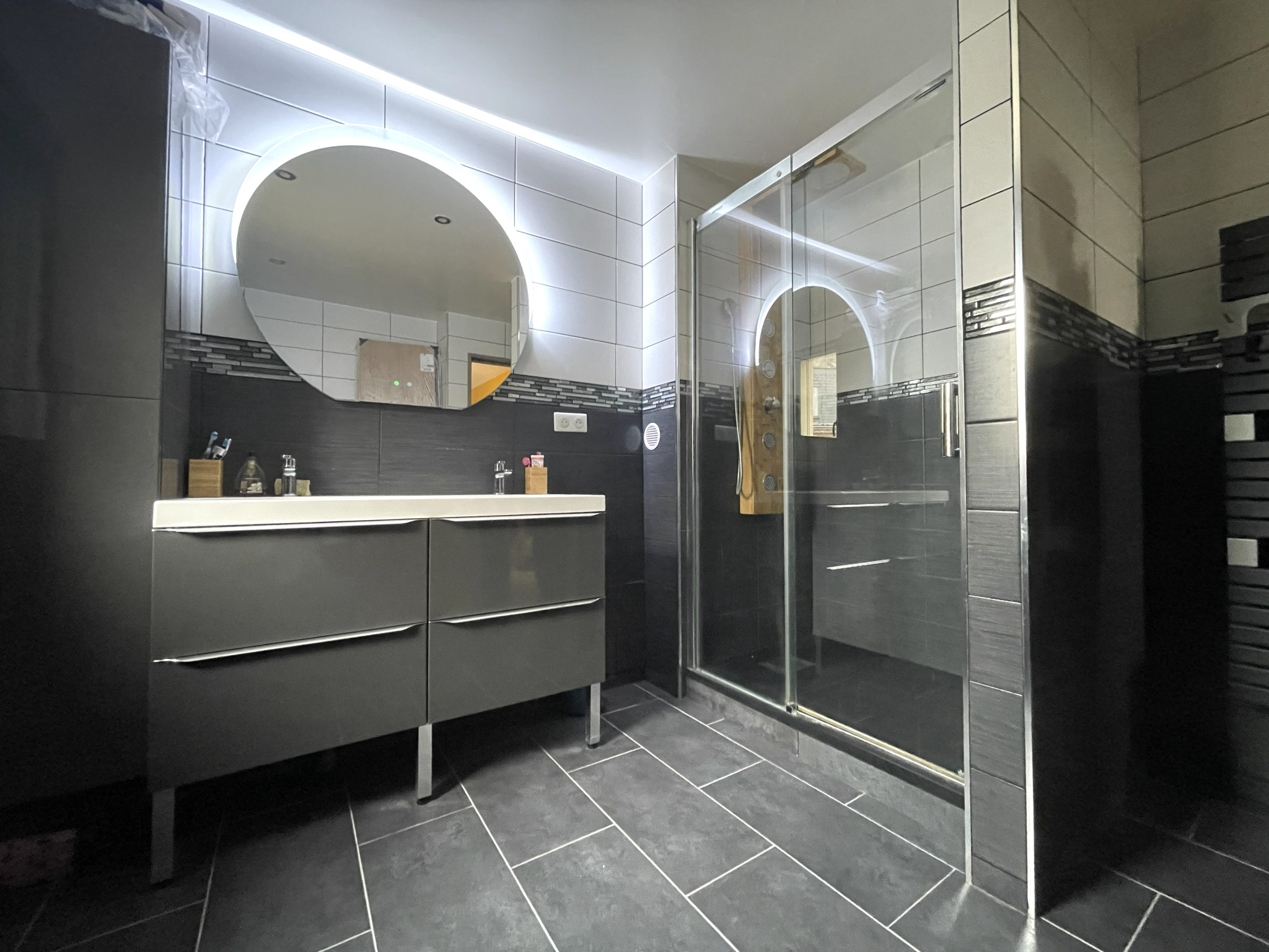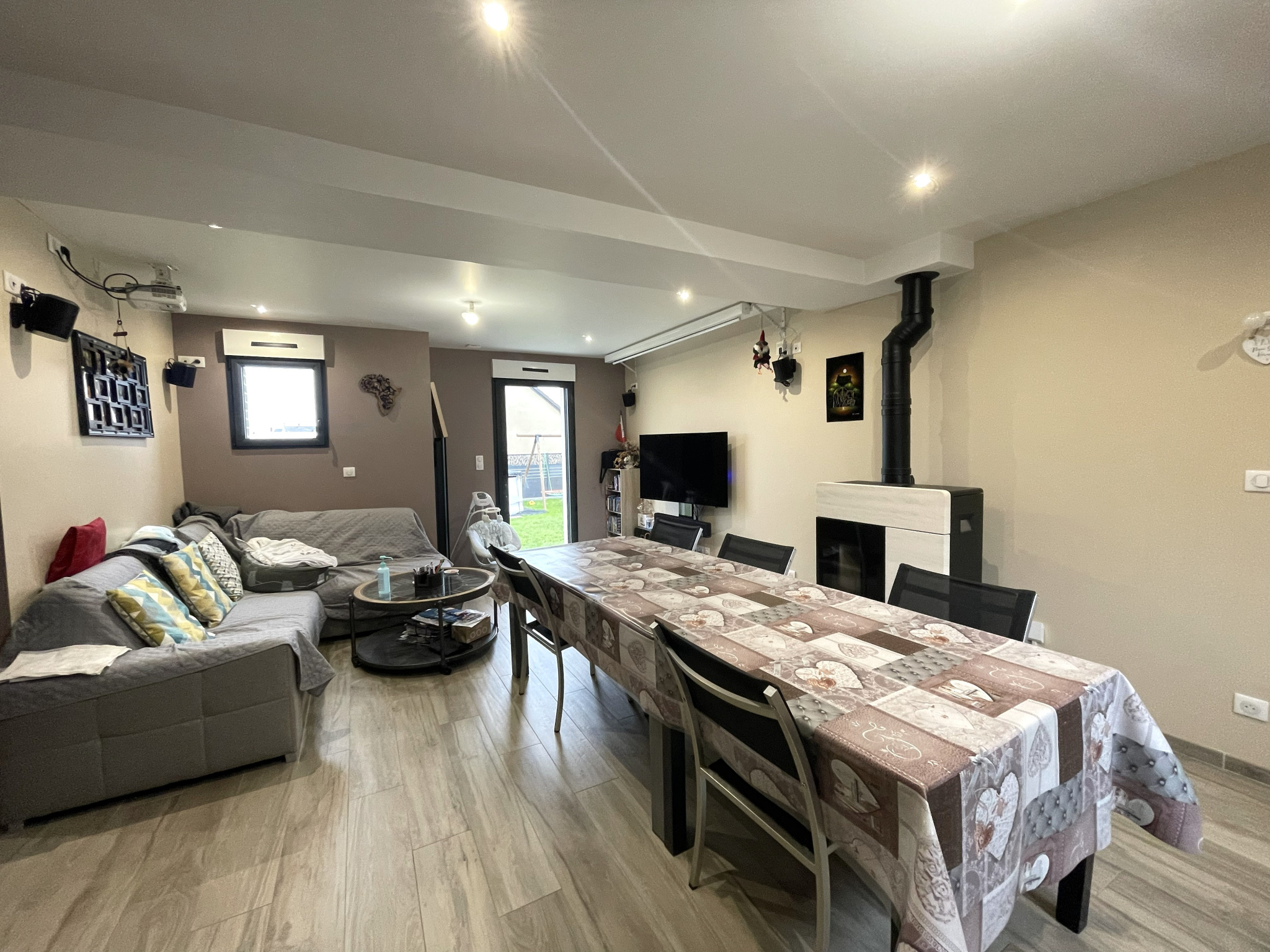 À découvrir sans tarder : charmante maison moderne de 2020, mitoyenne d un côté par le garage, située en plein cœur de Bacqueville-en-Caux, à proximité immédiate des commerces et des écoles accessibles à pied. Cette maison récente offre une vie de plain-pied et des prestations fonctionnelles. Au rez-de-chaussée, vous trouverez une entrée avec rangements, un lumineux salon/séjour, une cuisine aménagée, une arrière-cuisine avec accès à un grenier, une buanderie, un WC indépendant, une salle de douche ainsi qu’une chambre avec dressing. À l’étage, un palier dessert deux chambres avec dressing, un WC indépendant, une salle de douche et un espace dégagement pouvant faire office de bureau, menant à une quatrième chambre située au deuxième étage. L’ensemble est édifié sur un terrain clos d’environ 609 m2 comprenant un garage avec espace grenier, un chalet équipé en eau et en électricité, ainsi qu’une agréable terrasse pour profiter des beaux jours. A visiter rapidement !